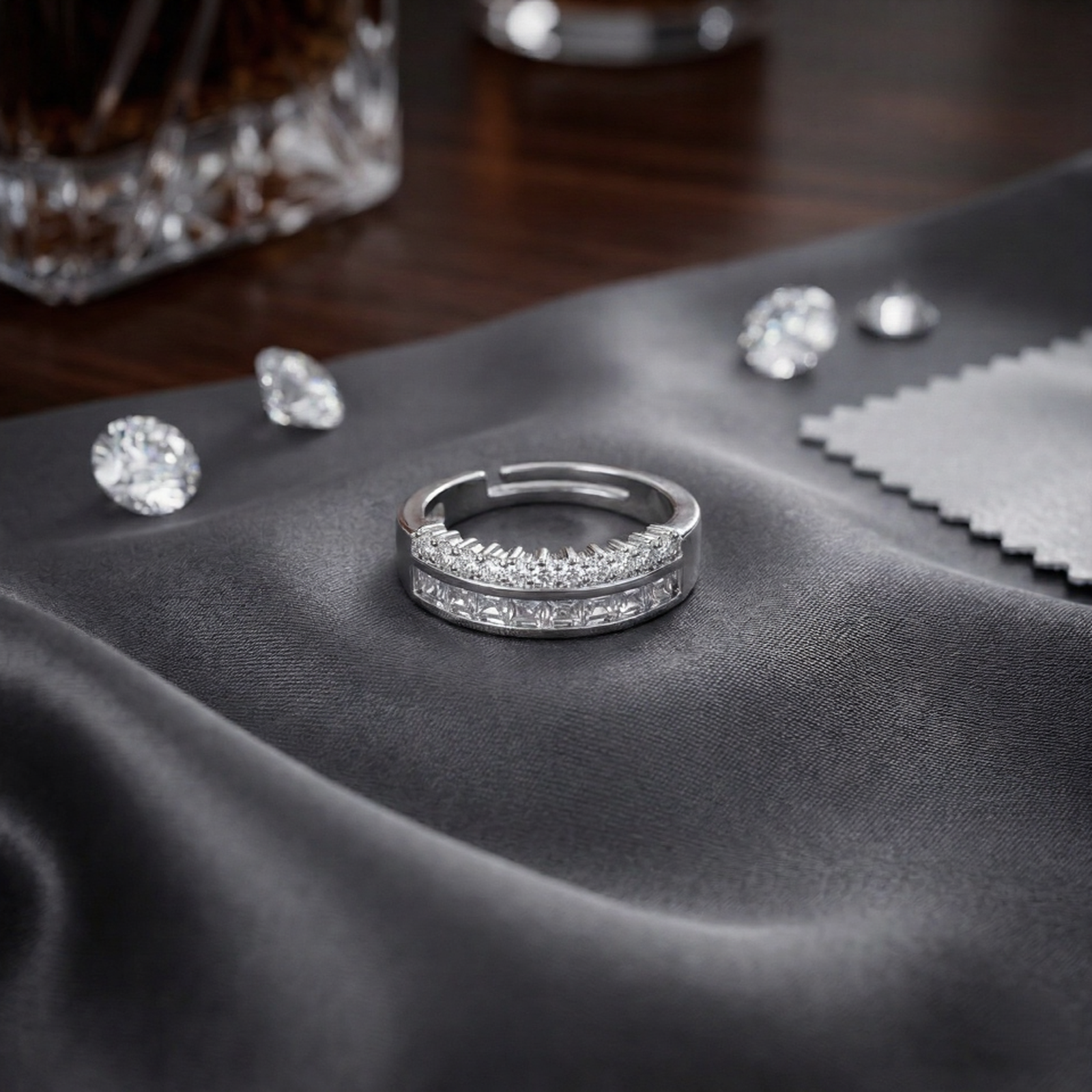 Add a touch of passionate color to your style with this sophisticated bypass-style ring. Featuring a dynamic, overlapping design, the band splits into two gracefully curved rows that wrap around the finger for a modern, fluid aesthetic.